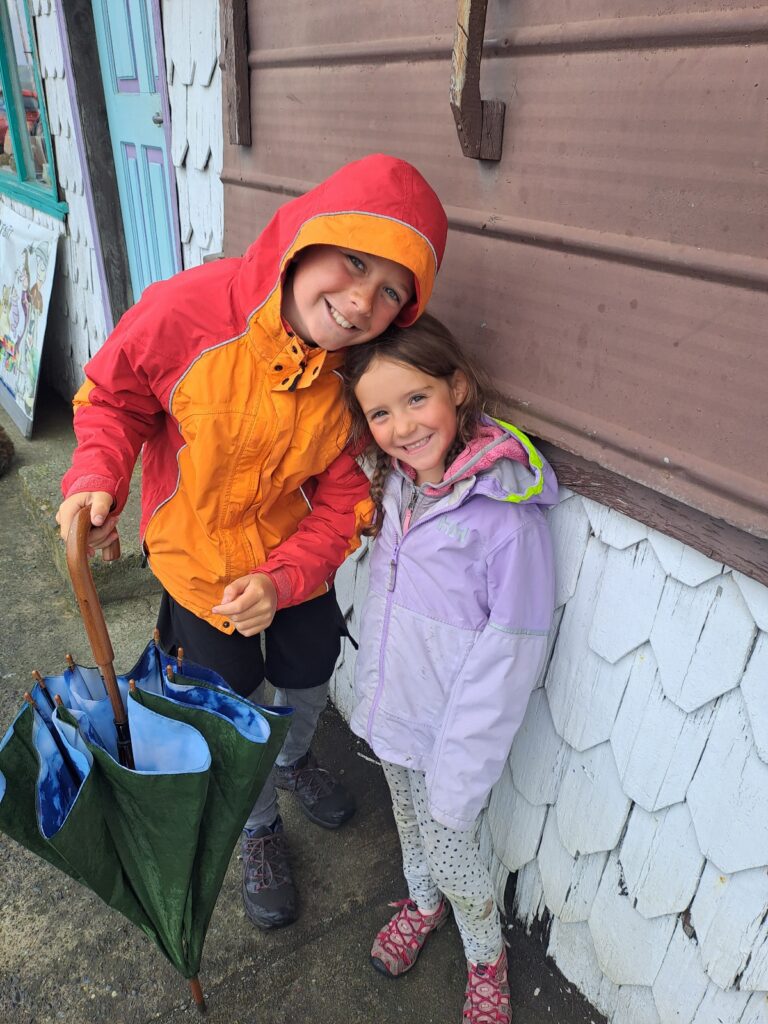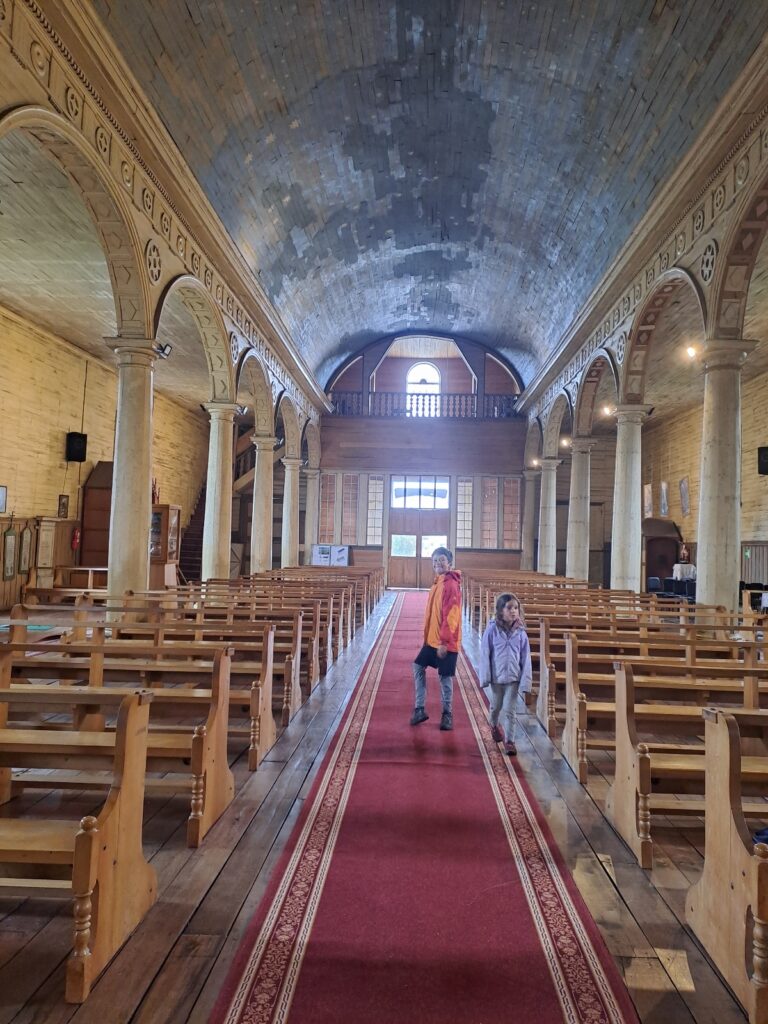 Au réveil, nous entendons la pluie tambouriner sur les fenêtres. Nous sommes bien à l’abri dans notre palafito. Du coup, ce matin, rien ne presse, nous devons rendre les clés à 11h. Après le petit déjeuner, séance école pour les enfants. Puis nous rangeons nos affaires, déposons tout à l’accueil et partons à pieds au terminal de bus (avec nos vestes de pluie et 2 grands parapluies prêtés par la dame de l’hôtel).