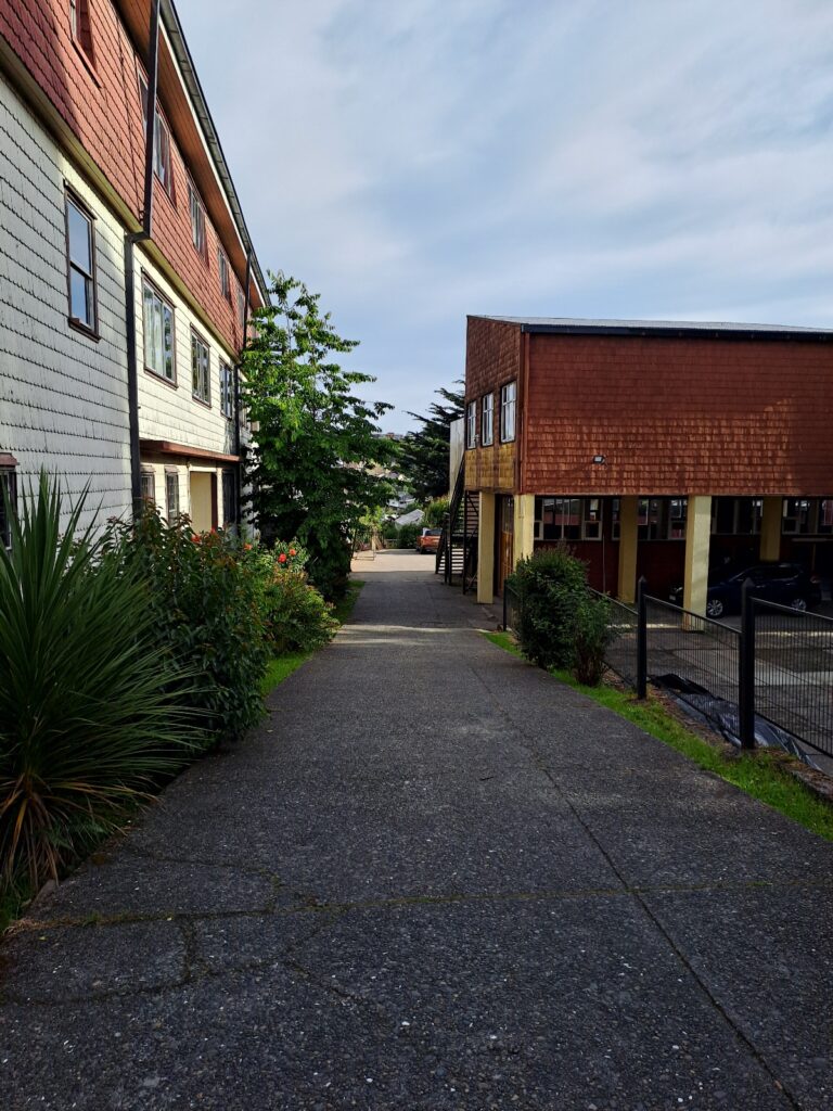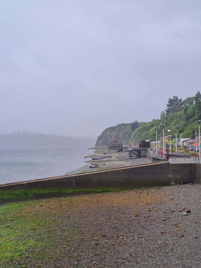 Collectivo puis bus, nous sommes à Ancud en fin d’après-midi. Nous avons rdv avec sœur Maria au lycée. Elle a prévu de nous faire dormir à l’internat vu le temps d’aujourd’hui (chouette, pas de tente à monter!!). Par chance, il fait beau quand nous arrivons à Ancud, c’est quand même plus agréable et rassurant car demain, nous repartons sur nos vélos!
