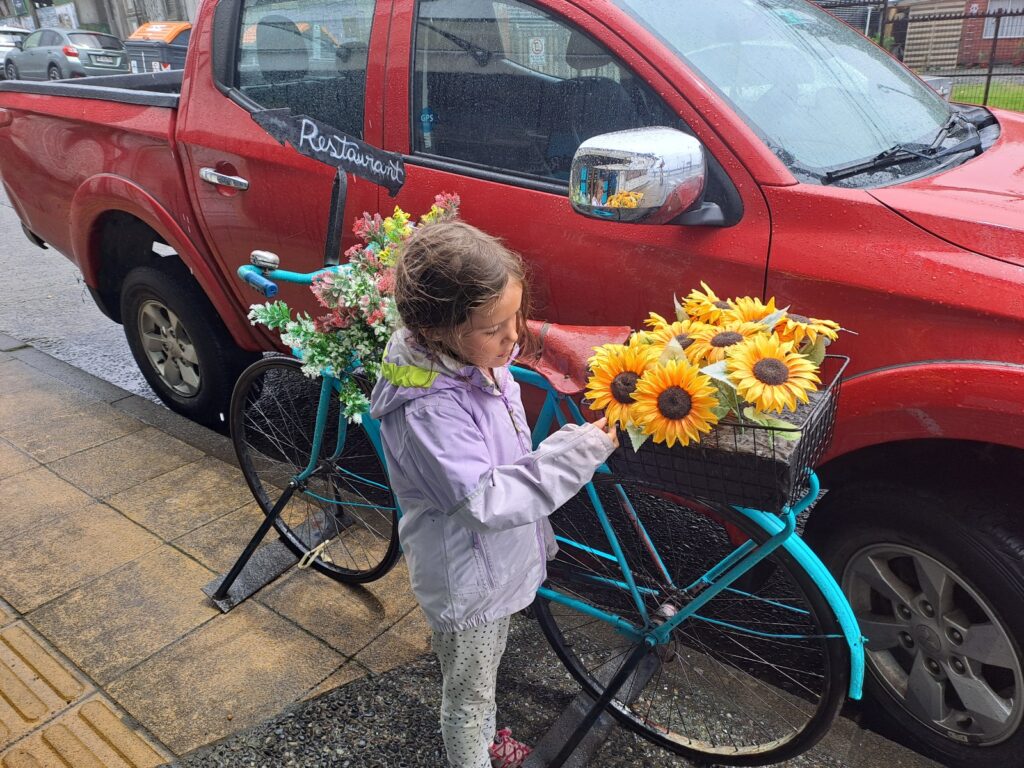 Après le déjeuner, nous filons vite reprendre un collectivo pour rentrer à Castro car ensuite, nous devons récupérer nos affaires avant de partir vers Ancud en bus. En chemin, Marie voit un joli vélo, nous le prenons en photo.