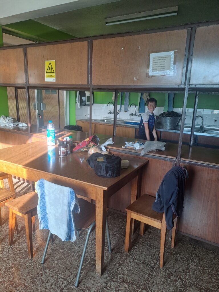 Nous sommes accueillis par la responsable de l’internat qui nous montre notre chambre pour la nuit ainsi que la cuisine où nous allons pouvoir dîner et prendre le petit déjeuner demain matin.