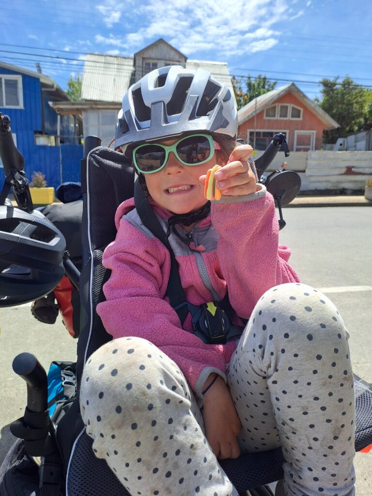 La journée passe vite, cela nous semble facile aujourd’hui ! Lorsque nous arrivons à Carelmapu, nous passons saluer les carabineros qui offrent aux enfants des pochettes de bonbons. Ils sont vraiment sympas!