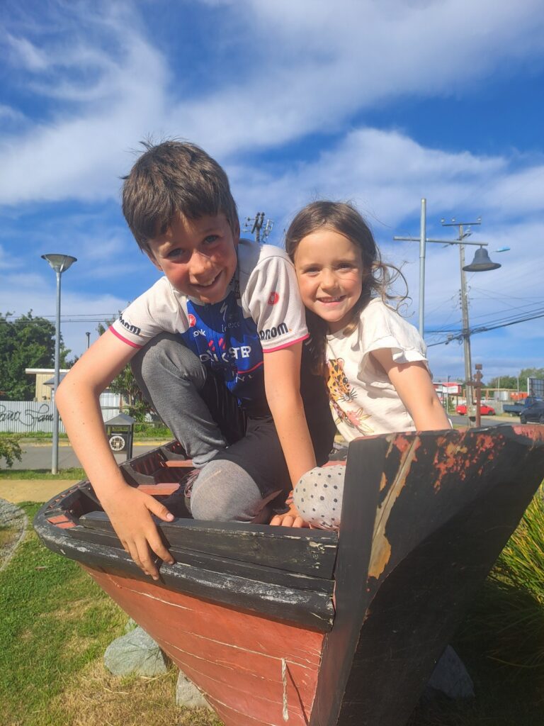 Les enfants sont ravis d’être de nouveau sur le bac pour 5 kilomètres.