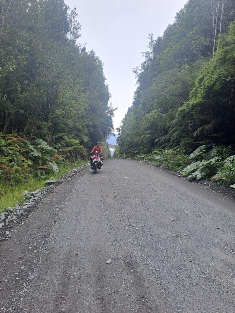 Après environ une quinzaine de kilomètres, la route asphaltée est remplacée par une piste en ripio. Nous roulons moins vite, c’est beaucoup plus fatiguant pour nous et l’humidité ambiante fait que le sable colle un peu sous nos pneus. Il va falloir un peu de courage pour poursuivre la route aujourd’hui. Heureusement, nous sommes récompensés par de magnifiques paysages cachés entre les plantes.