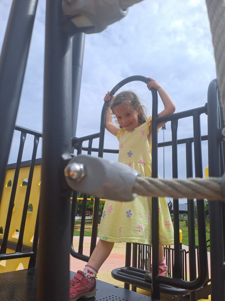 On va aux parcs pour jouer : il doit y en avoir au moins 5 ou 6 le long de l’océan, nous y passons une bonne partie de nos après-midi !!