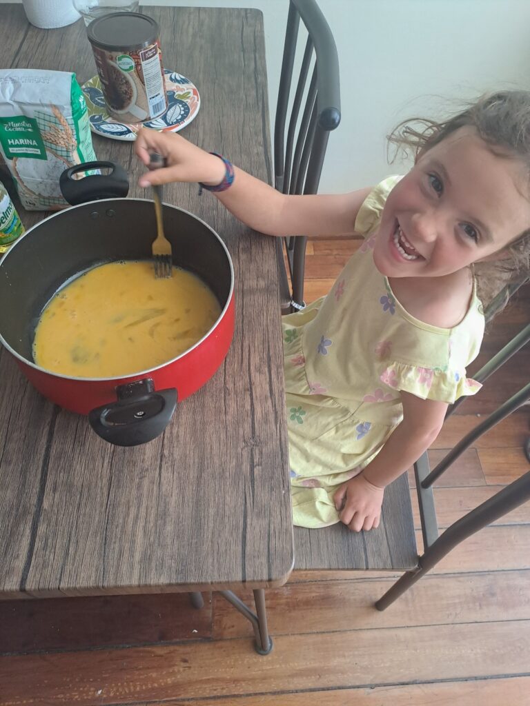 Nous nous retrouvons ensuite tous les quatre à l’appartement pour déjeuner. En début d’après-midi, Marie et Caroline préparent une pâte à crêpes en vue du goûter et du dîner!