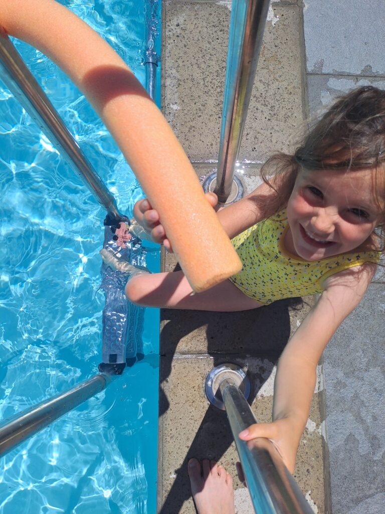 Puis nous sommes bien contents de pouvoir profiter de la piscine, d’autant plus que nous sommes seuls. Les enfants s’en donnent à cœur joie! Même Marie qui avait un peu peur de l’eau commence à s’y sentir à l’aise (elle a même pied aux extrémités donc se sent plus en sécurité).