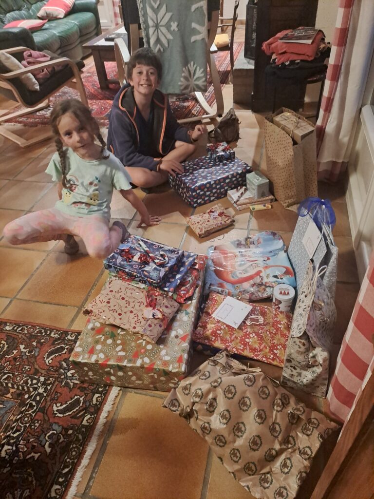 Nous sommes attendus de pied ferme à Pibrac chez Mamie et Daddy. Les enfants découvrent que le père Noël est passé en notre absence, il a été plus que généreux! Nous fêtons aussi les anniversaires en retard!