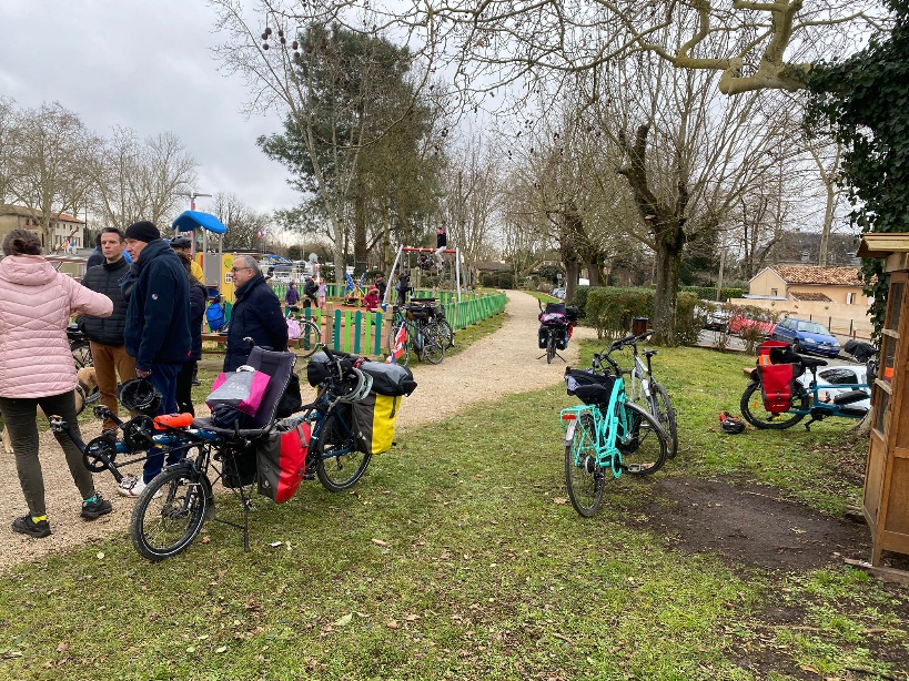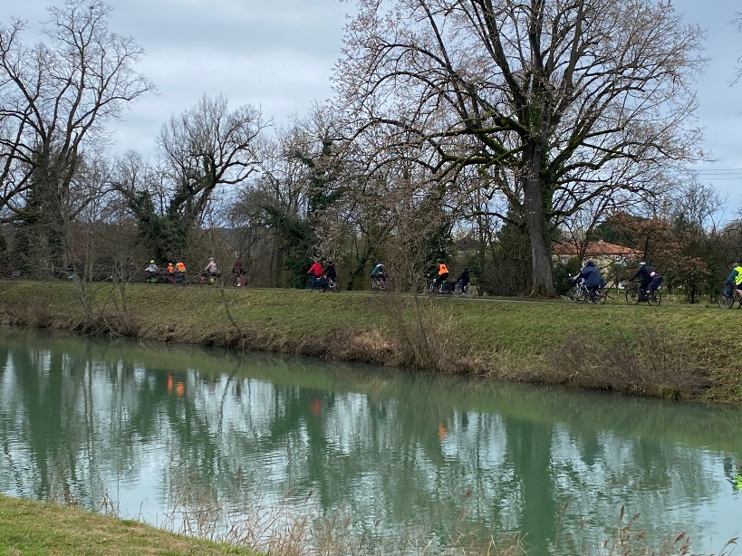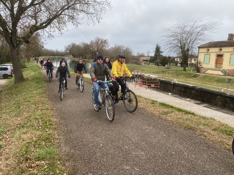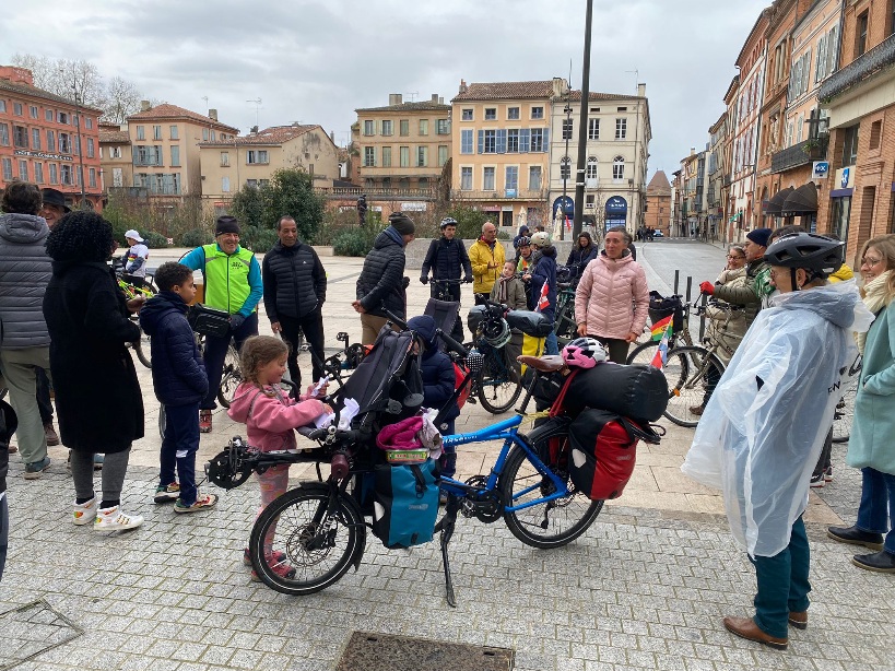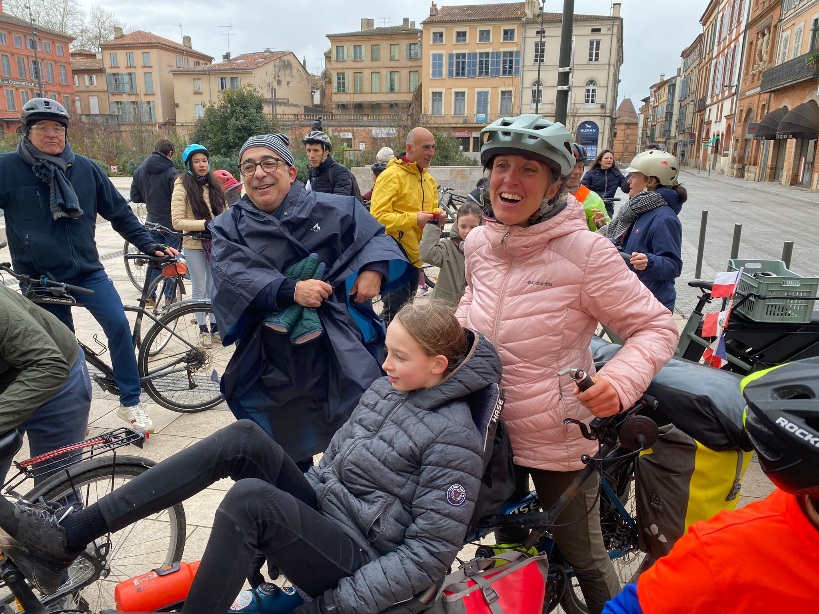 Après 1h30 d’échanges, de partages et de bon pique-nique, nous invitons toute la troupe à monter sur les vélos pour partir direction Montauban. Nous avons environ 14 kilomètres à parcourir pour arriver jusque dans le centre. La joyeuse troupe se met donc en route, l’ambiance est très sympa!