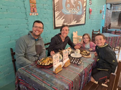 Enfin, les deux hommes de la camionnette arrivent et sont d’accord pour nous prendre mais seulement jusqu’à Barrio Chino (10 kms plus loin). Il est 15h, nous n’hésitons pas et acceptons leur offre. Paul et Thomas seront à l’arrière de la camionnette avec les vélos et les cheveux au vent, Caroline et Marie à l’avant. Nous sommes déposés au centre du village devant un petit hôtel qui sera parfait pour la nuit.