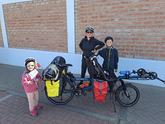 Bravo pour le remontage et toute la mise en sac ! Ça y est, vous concrétisez votre rêve de vélo en famille, et vous nous faites rêver. Vous semblez avoir tellement de force et courage que je ne sais pas si on peut vous en souhaiter plus, bravo et bonne route !