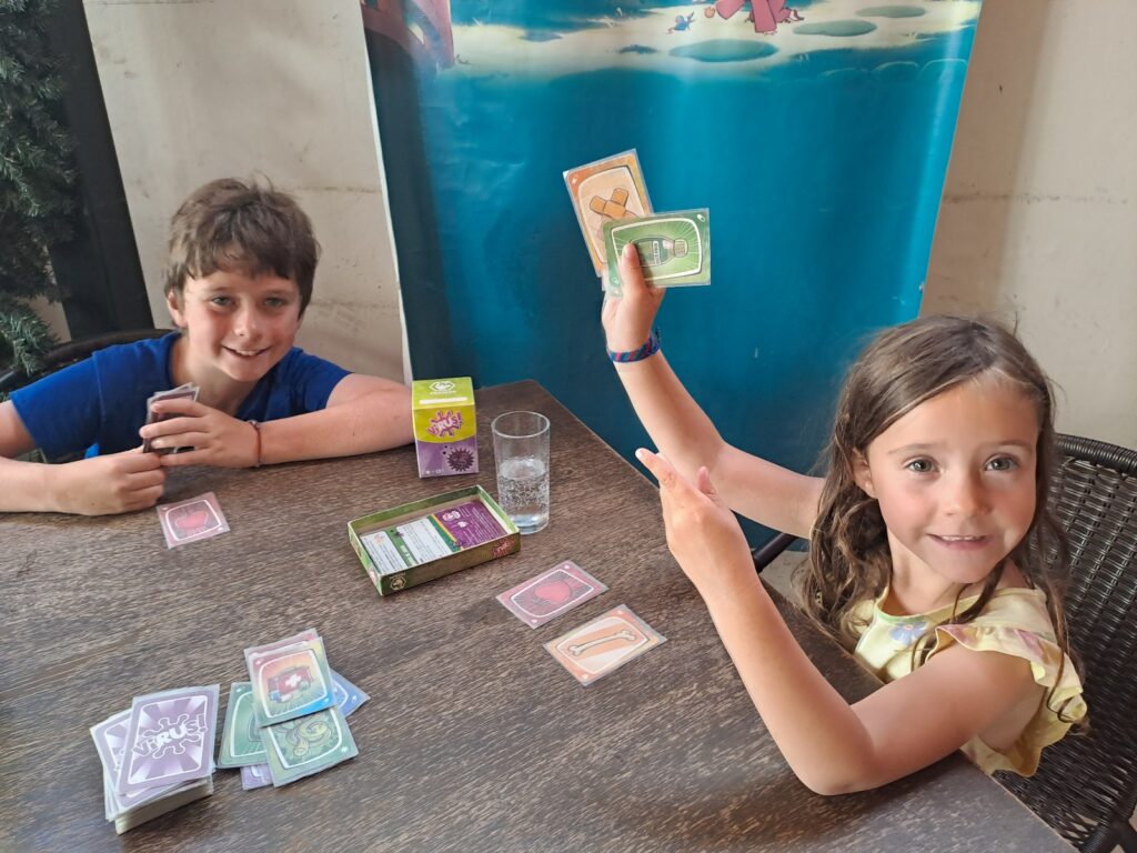 Nos journées sont rythmées entre les repas, les sorties piscine, les cartons à finir de scotcher et étiqueter, les pesées des cartons pour être sûr que ça passera dans l’avion, les sorties jeux de société juste en face de notre immeuble et un changement d’appartement non prévu (et oui, Caroline s’est trompée dans la réservation du Airbnb !!… Mais quand on a pas de tête, on a des jambes : heureusement, notre hôte a un autre appartement dans la même résidence… Ouf!!)